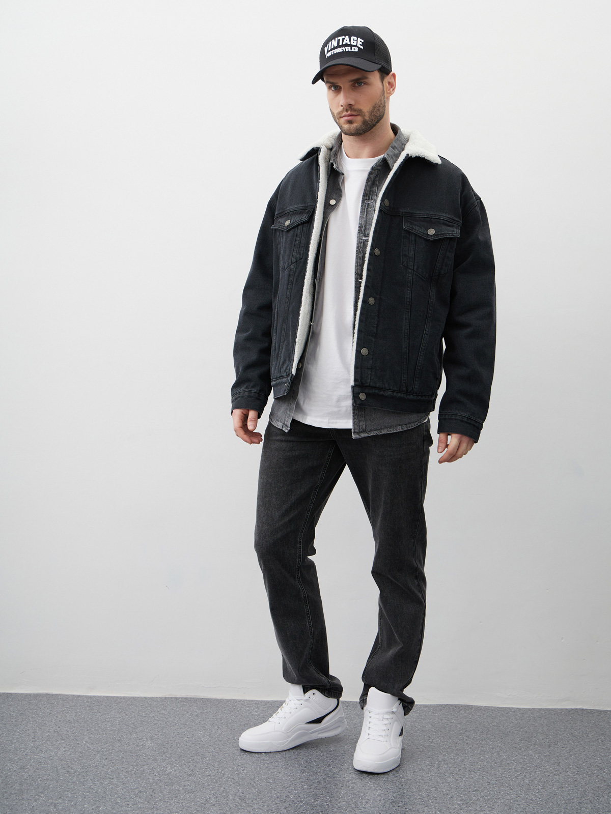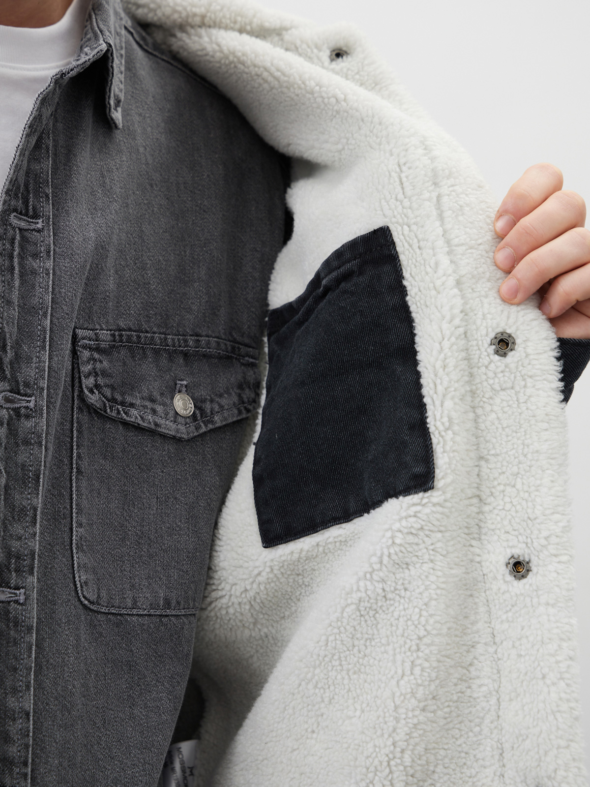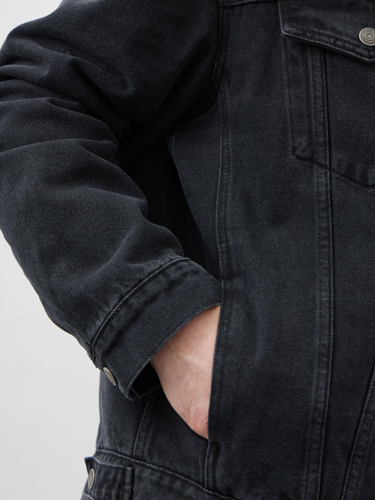 Куртка утепленная свободного кроя или оверсайз выполнена из 100% хлопкового денима с отложным воротником с мехом. Утепленная джинсовая куртка с искусственным мехом внутри обеспечит дополнительное тепло в прохладное время года. Шерпа - это мягкий, приятный материал, который наподобие искусственного меха. Он обладает отличными теплоизолирующими свойствами, поэтому эта куртка будет идеальным выбором в холодные дни. Куртка джинсовая оверсайз с простроченной подкладкой на синтепоне внутри рукавов, а также с застёжкой на металлические кнопки. Мужская джинсовая куртка с утеплителем из шерпы комбинирует в себе прочный деним с теплым и мягким материалом внутри. Это обеспечивает не только защиту от холода, но и комфортное ношение во время холодной погоды. Куртка с нагрудными и прорезными карманами, а также внутренним карманом для хранения важных вещей. Свободный силуэт или оверсайз добавляет куртке стильный вид и позволяет носить ее как с легкими слоями одежды, так и с пуловерами или свитерами в холодные дни.