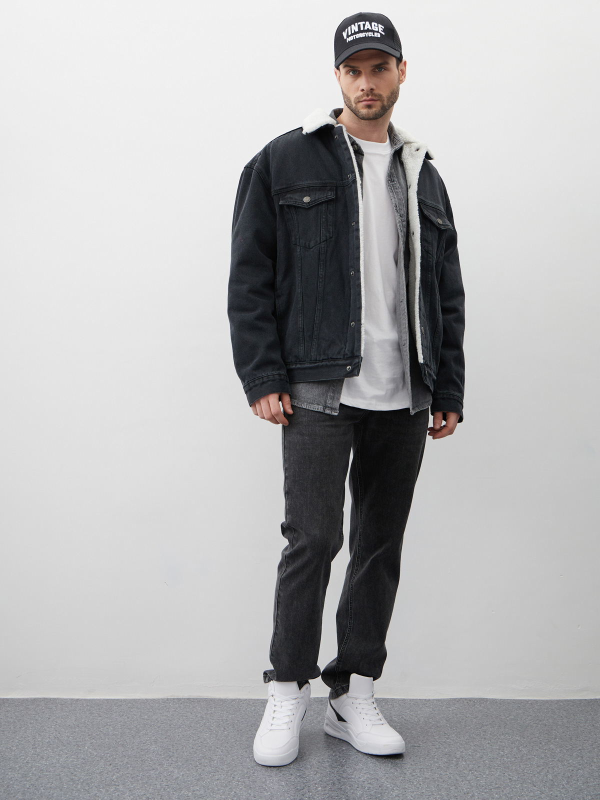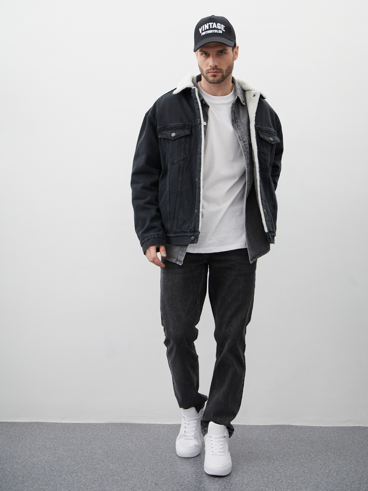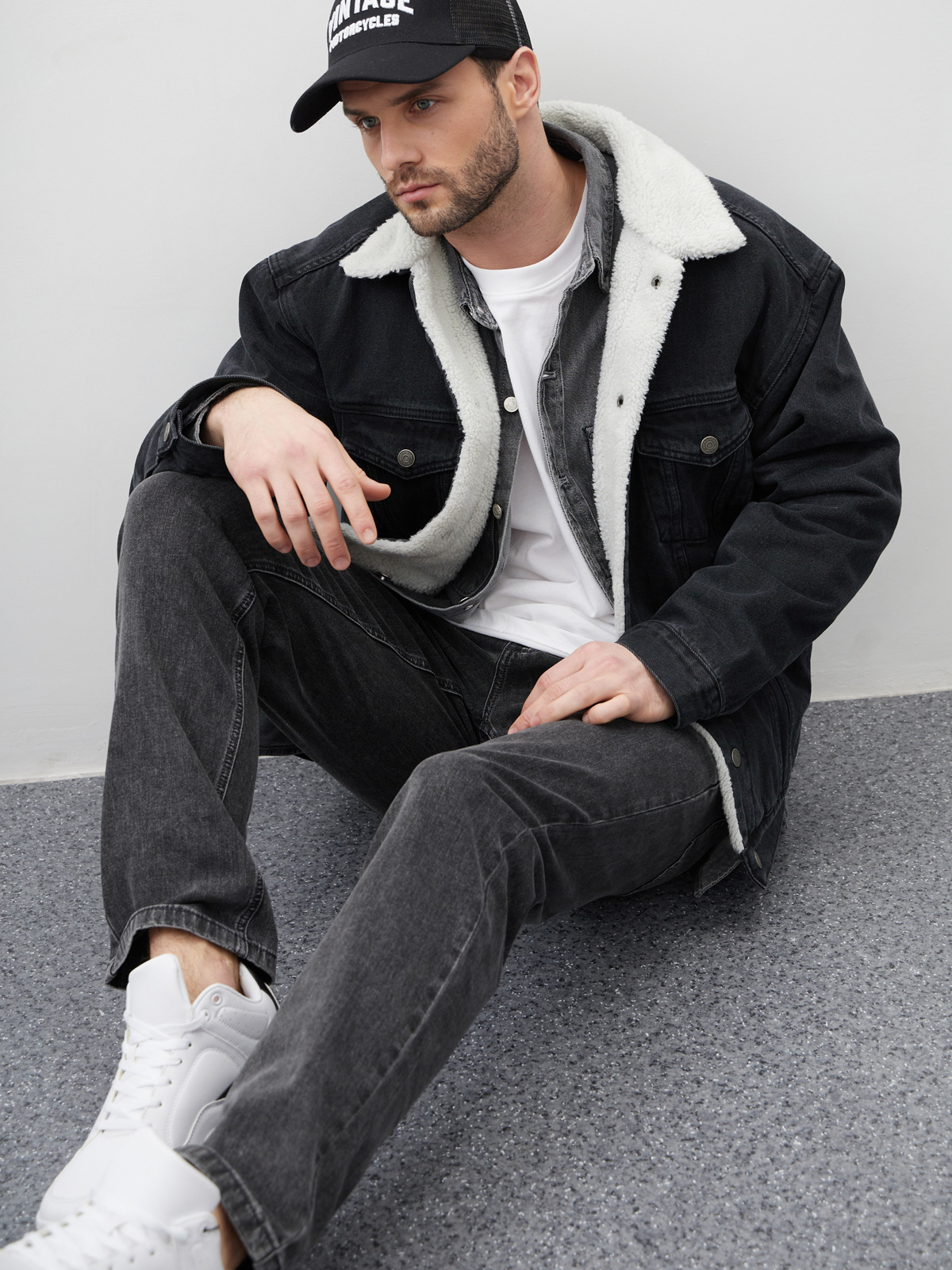 Куртка утепленная свободного кроя или оверсайз выполнена из 100% хлопкового денима с отложным воротником с мехом. Утепленная джинсовая куртка с искусственным мехом внутри обеспечит дополнительное тепло в прохладное время года. Шерпа - это мягкий, приятный материал, который наподобие искусственного меха. Он обладает отличными теплоизолирующими свойствами, поэтому эта куртка будет идеальным выбором в холодные дни. Куртка джинсовая оверсайз с простроченной подкладкой на синтепоне внутри рукавов, а также с застёжкой на металлические кнопки. Мужская джинсовая куртка с утеплителем из шерпы комбинирует в себе прочный деним с теплым и мягким материалом внутри. Это обеспечивает не только защиту от холода, но и комфортное ношение во время холодной погоды. Куртка с нагрудными и прорезными карманами, а также внутренним карманом для хранения важных вещей. Свободный силуэт или оверсайз добавляет куртке стильный вид и позволяет носить ее как с легкими слоями одежды, так и с пуловерами или свитерами в холодные дни.