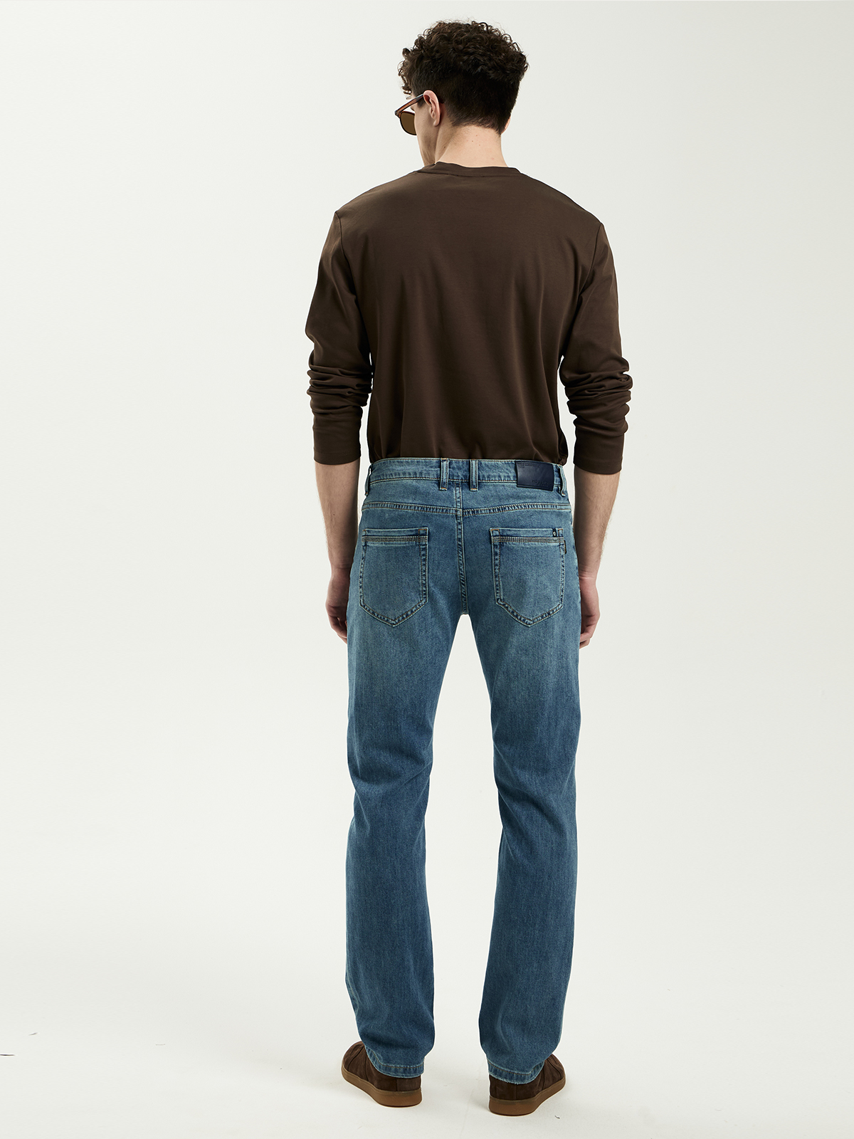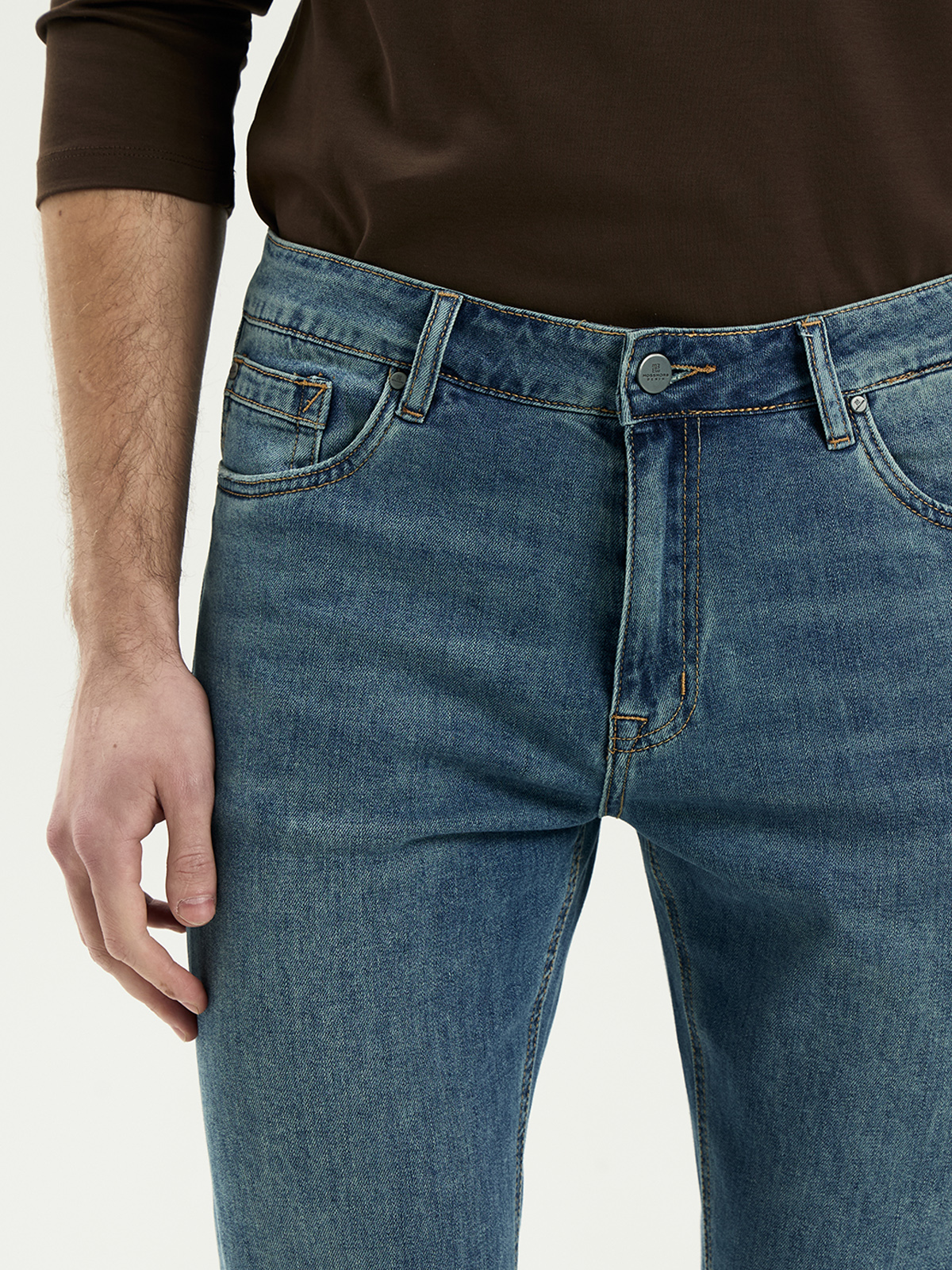 - Особенность: Облегченная ткань, мягкая ткань, добавлена эластичная нить, средняя посадка, легкие потертости