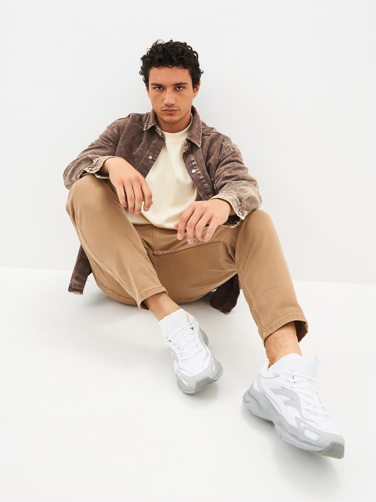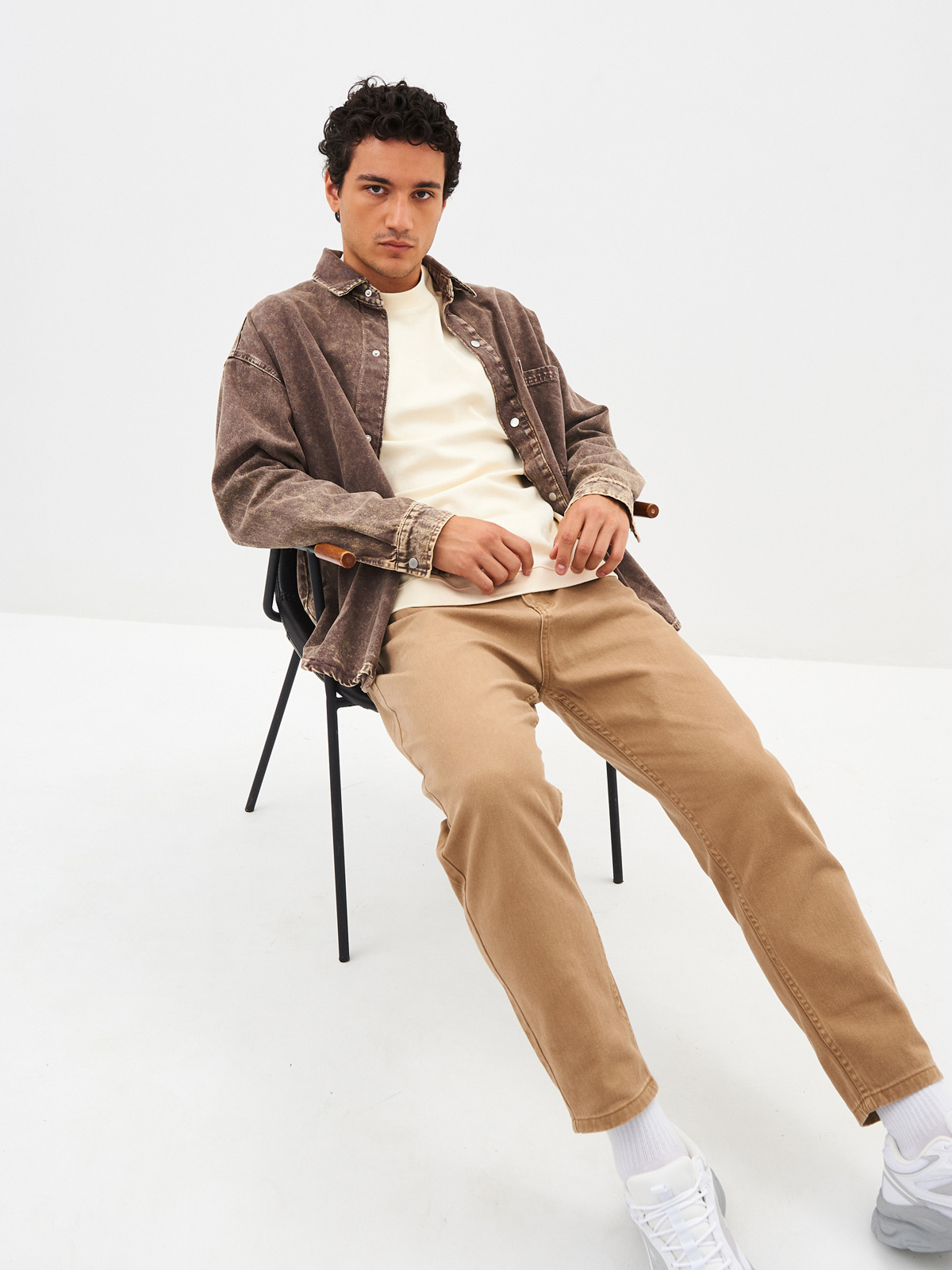 Цветные джинсы силуэта мом из 100% хлопковой облегченной ткани на невысокий рост. Цветные джинсы момы с пятью карманами с фирменными металлическими заклепками, свободной в бедрах посадкой и зауженными брючинами к низу, что характерно для силуэта мом подходят на любой возраст и тип фигуры. Мужские джинсы со средней посадкой с застёжкой на молнию и пуговицу, а также со шлёвками для ремня на талии. В наличии представлены различные варианты цветовой гаммы, что позволит создать множество вариаций, стильных и модных образов на осень и весну. Универсальные джинсы будут отлично сочетаться с клетчатыми рубашками из новой коллекции, а также подойдут для повседневной носки. Особенно модные в этом сезоне момы с укороченными брючинами или с подворотами.