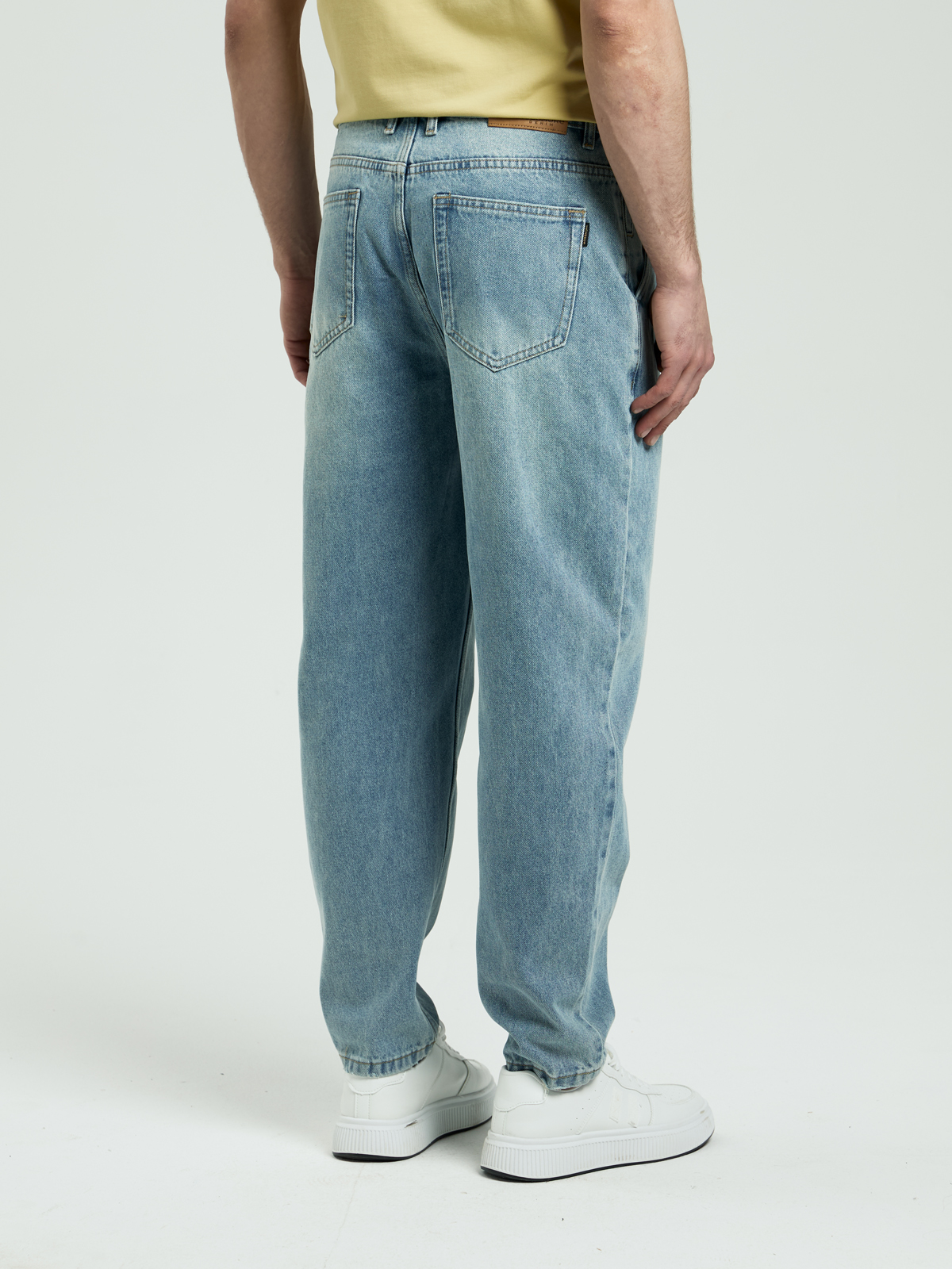 Темные джинсы из плотного однотонного денима (13,2 oz) объемного на бедрах силуэта мом из 100% хлопка. Четырехкарманная модель на рост 170-176 см с защипами спереди и ложным монетным карманом спереди. На талии есть шлёвки для ремня, а также фирменный патч из темной экокожи "Mossmore". Застёжка на молнию и болт-пуговицу. Размер на модели 32, рост 187 см.