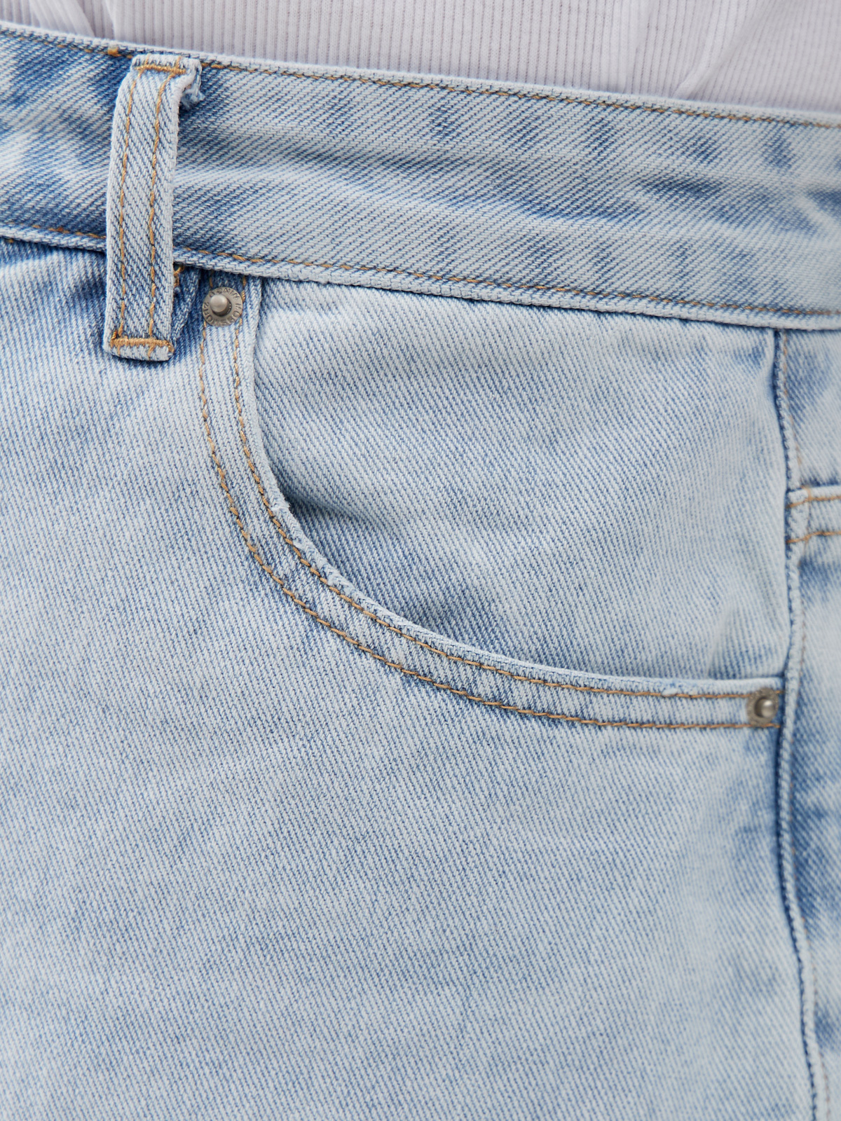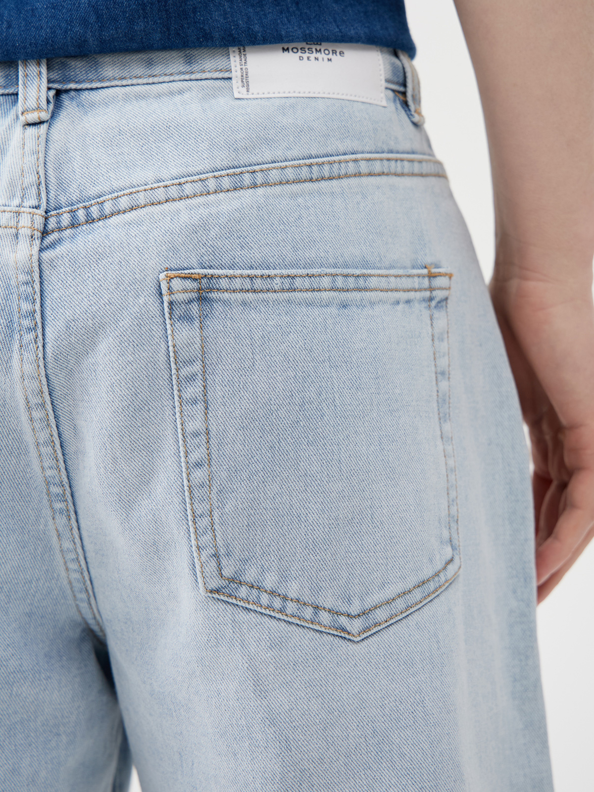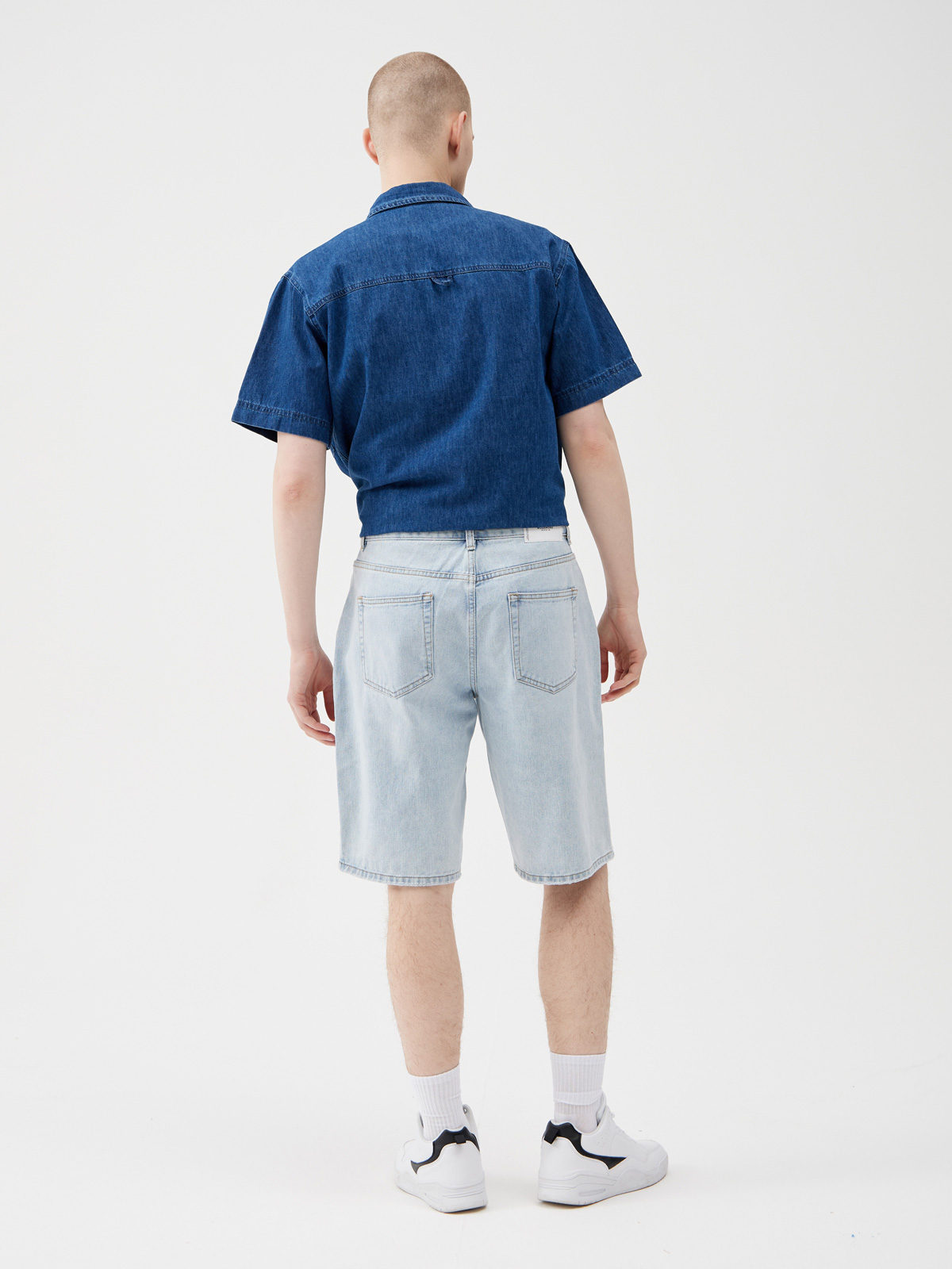 Джинсовые удлиненные шорты или бермуды из 100% хлопкового денима. Эти мужские джинсовые шорты из голубого денима — идеальный выбор для горячих летних дней. С их оригинальным дизайном и деталями, они станут незаменимой частью вашего гардероба, позволяя создать стильные и комфортные образы. Изготовленные из лёгкого и дышащего голубого денима, эти шорты обеспечивают максимальный комфорт в жаркую погоду. Деним обладает прочностью и износостойкостью, что гарантирует долговечность изделия. Ручная обработка потертосей краев низа шорт придаёт им эффект легкой "стертости", создавая стильный и расслабленный вид. Такие детали делают каждую пару шорт уникальной и добавляют характер вашему образу. Фирменные металлические заклепки на карманах не только служат стильным акцентом, но и подчеркивают качество и внимание к деталям. Эти шорты обеспечивают отличную посадку благодаря продуманному крою. Они идеально подходят для активного отдыха и повседневной носки, позволяя вам свободно двигаться.