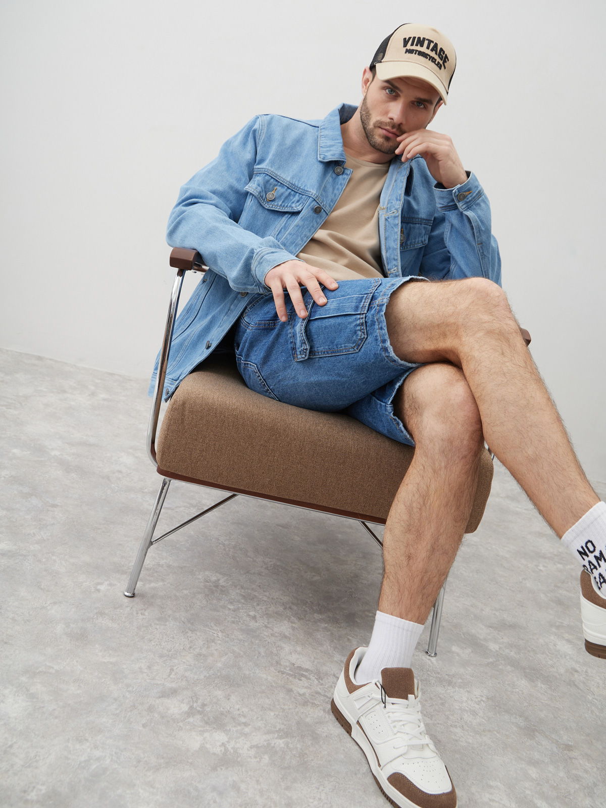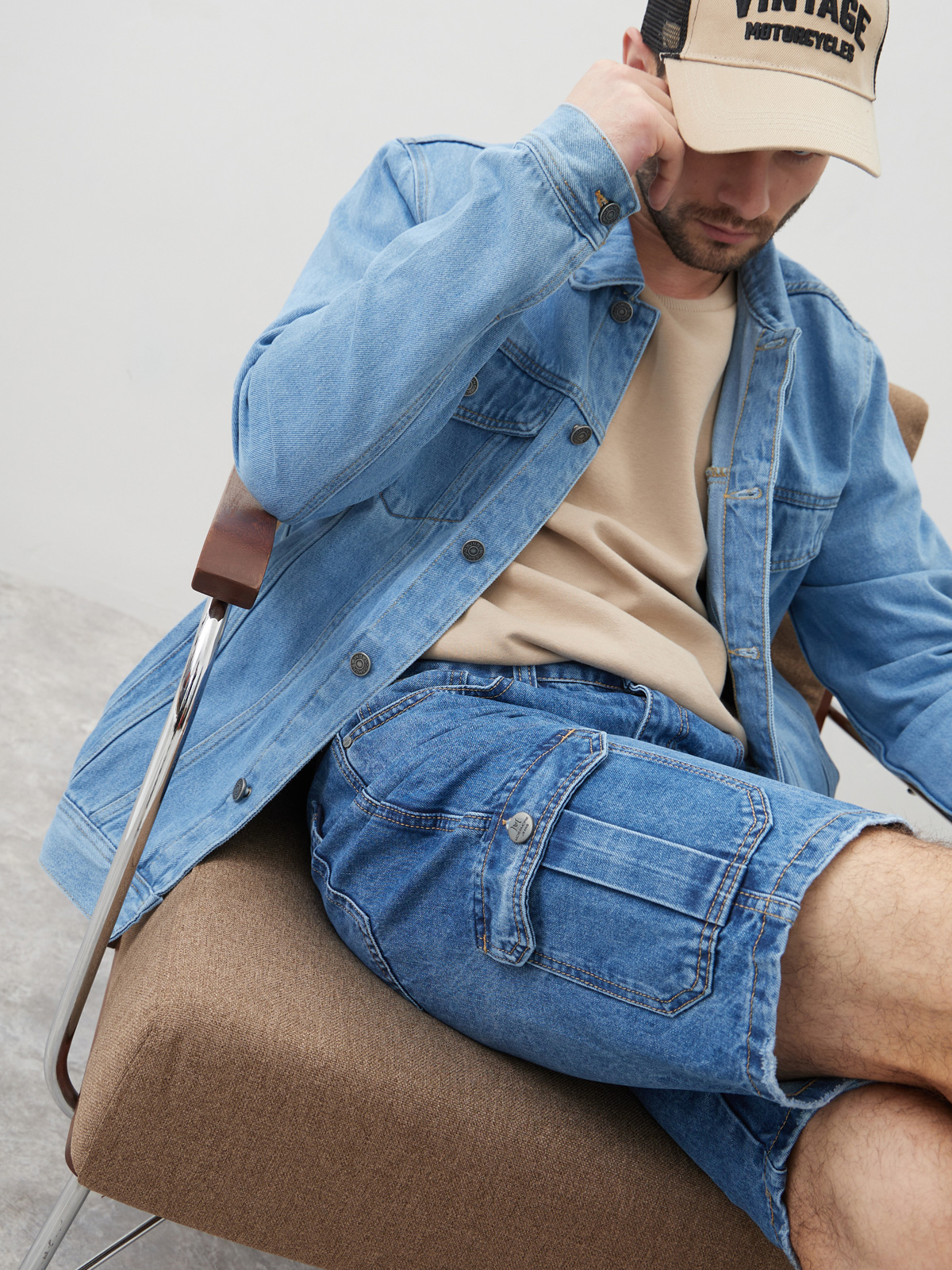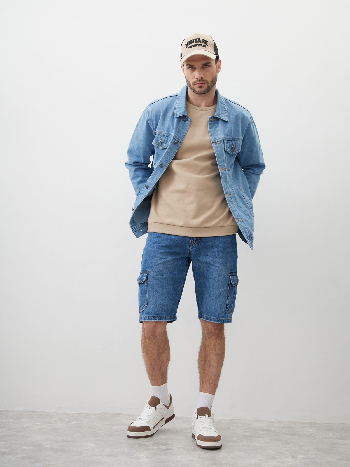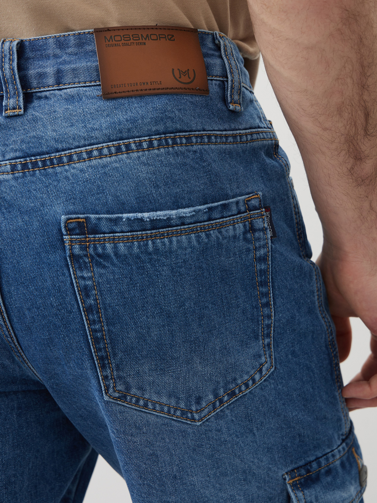 Мужские шорты из 100% хлопкового денима со слегка вареным эффект денима, который придает джинсовым шортам особый вид и текстуру. Он создает небрежный и авантюрный вид, делая образ более стильным и эффектным. Джинсовая ткань является прочной и долговечной, что делает эти шорты оптимальным выбором для активного летнего отдыха. Они также обеспечивают хорошую вентиляцию и комфорт в жаркую погоду. Джинсовые шорты длиной до колена или полностью прикрывающие коленную чашечку, в зависимости от роста. Мужские бриджи с фирменным узким лейблом "MOSSMORE" на внутренней стороне ширинки, а также ручной обработкой потёртостей краев карманов и кромки брючин.