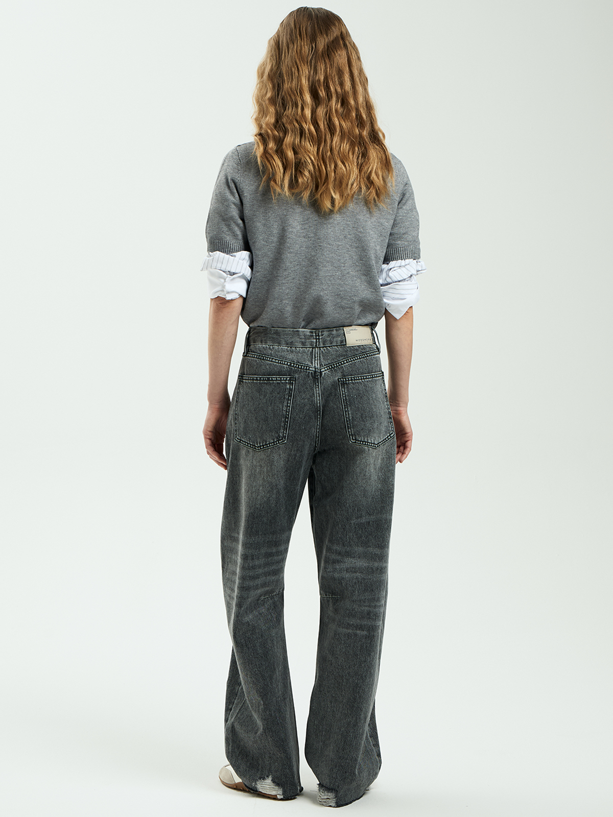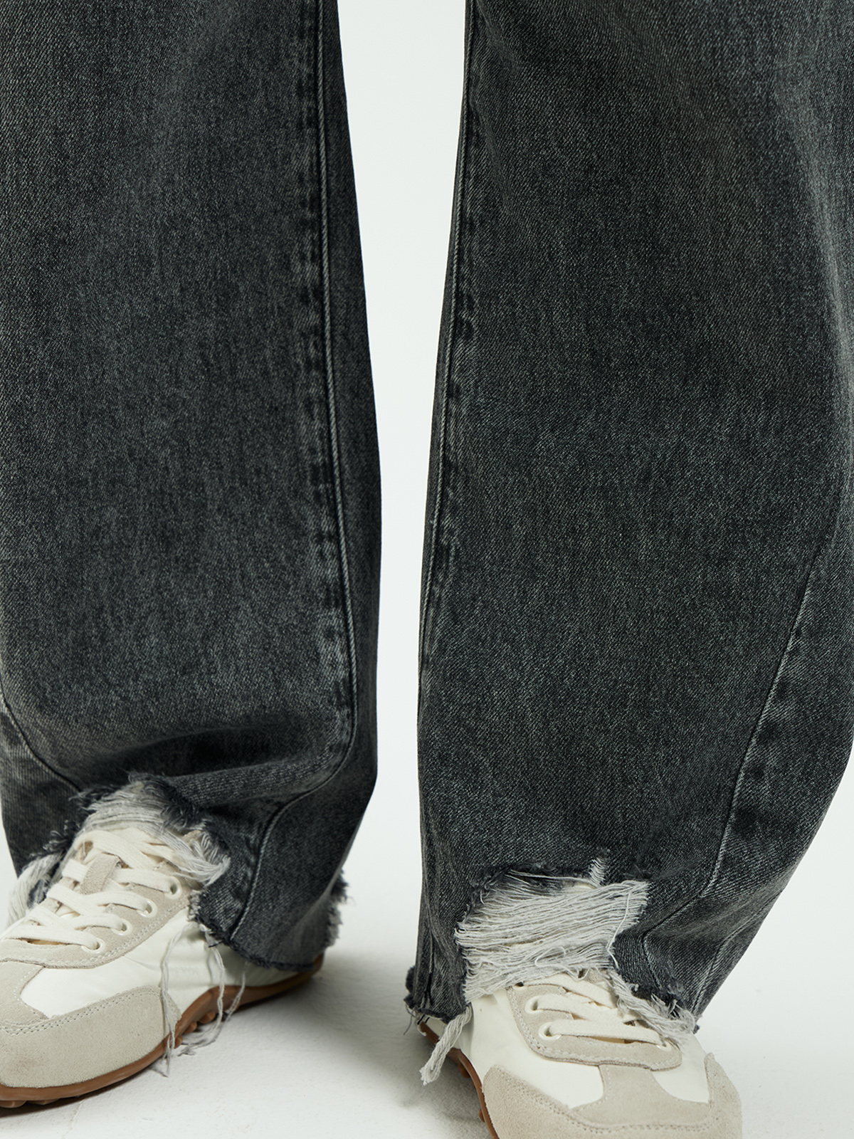 Актуальный силуэт баррел с трендовыми деталями — бахромой и эффектом потертости. Мягкая ткань и два варианта посадки обеспечат комфорт и интерес покупательниц.
