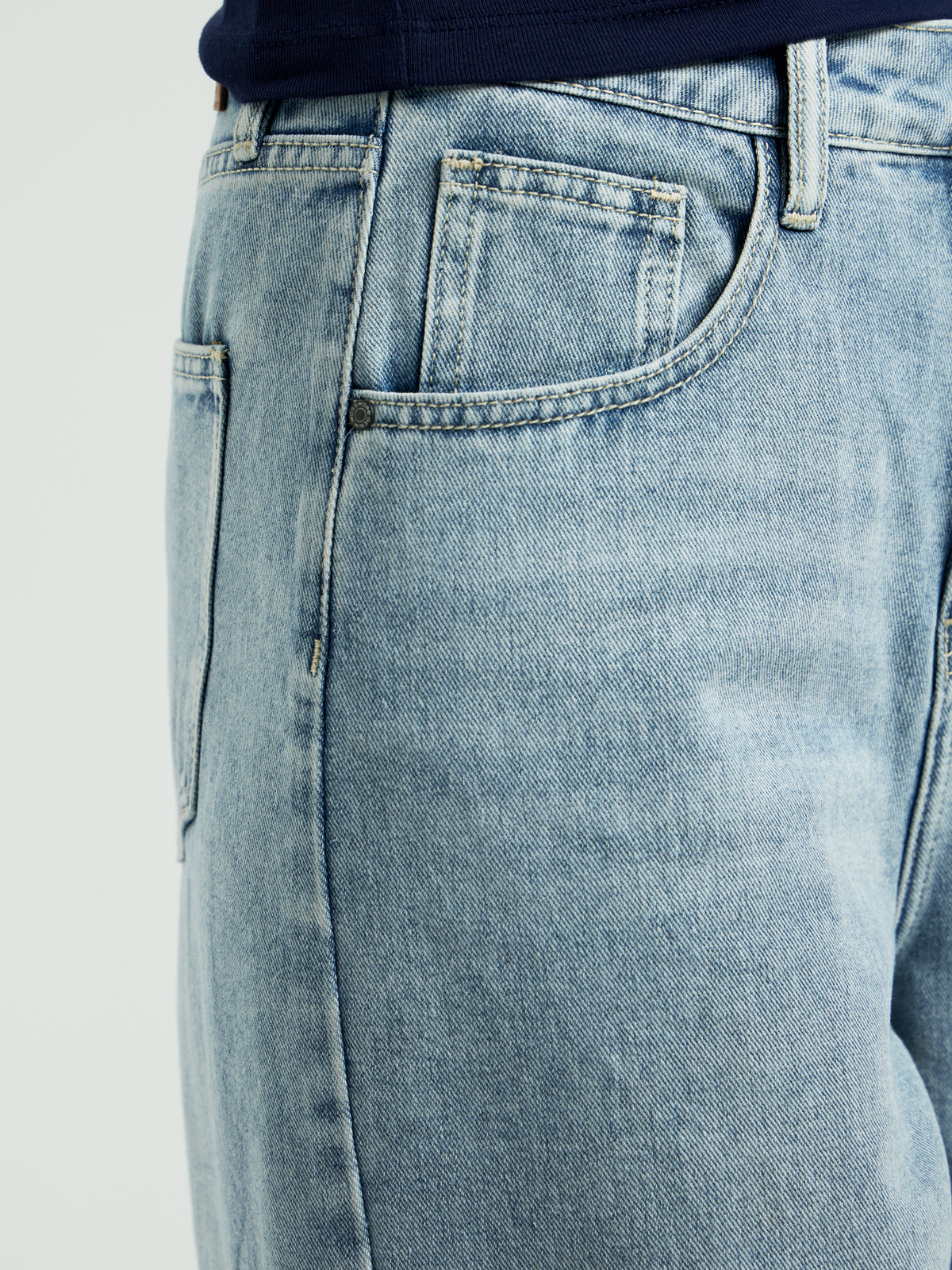 Модель выполнена из 100% хлопка средней плотности — натуральная ткань хорошо дышит и дарит комфорт в течение всего дня. Универсальность модели — в двух вариантах посадки: джинсы можно носить как на высокой посадке, так и на бёдрах, меняя силуэт в зависимости от настроения. Свободный крой бэгги создаёт расслабленный современный образ, который остаётся в тренде. Модель дополнена пятью классическими карманами.