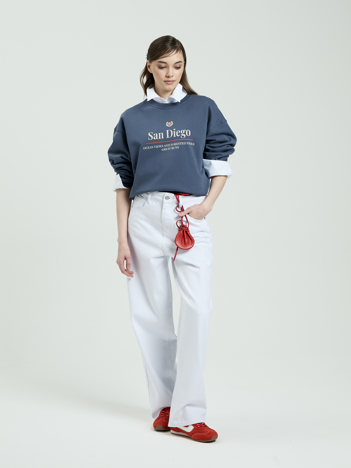 Два варианта посадки расширяют аудиторию покупательниц — модель подойдёт тем, кто предпочитает как высокую, так и более расслабленную посадку на бёдрах. Натуральный состав и свободный крой обеспечивают комфорт и стиль.